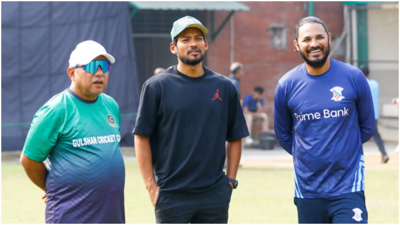 বিকেলে অনুশীলনে নাজমুল শান্তের সাথে সুজন ও তালহা। ছবি: সংগৃহীত