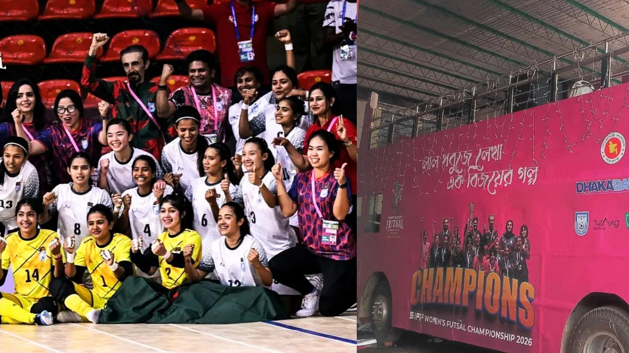 নারী ফুটবলারদের ছাদখোলা বাসে সংবর্ধনা দেওয়ার দৃশ্য অবশ্য নতুন নয়। ২০২২ ও ২০২৪ সালে সাফ নারী চ্যাম্পিয়নশিপ জয়ের পরও একইভাবে বরণ করা হয়েছিল দলকে। সেই দুই আসরেই ফাইনালে নেপালকে হারিয়ে শিরোপা জিতেছিল বাংলাদেশ।