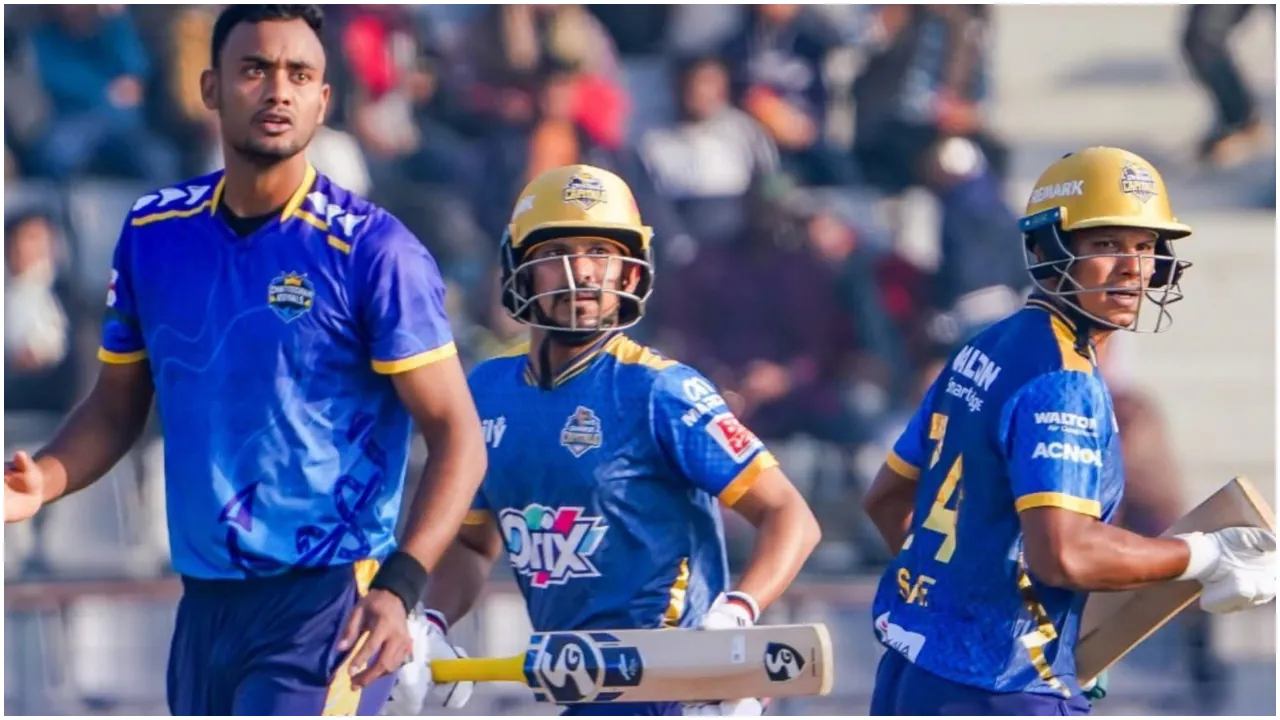 শরিফুল ইসলামের বোলিং তোপে পাওয়ার-প্লেতে বড় সংগ্রহ আনতে পারেনি ঢাকা। আরেক অপেনার জুবাইদ আকবরী ফিরেছেন ১২ বলে মাত্র ২ করে। এক প্রান্ত ধরে রেখে খেলার চেষ্টা করলেও ইনিংস বড় করতে পারেননি পাকিস্তানি ব্যাটার উসমান খান, ১৫ বলে ২১ করে তানভীর ইসলামের বলে স্টাম্পিং হয়ে ফেরেন তিনি।