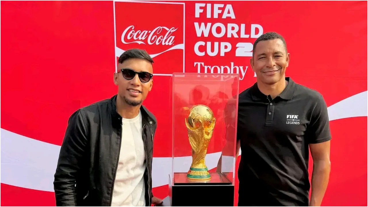 ২০২৬ ফুটবল বিশ্বকাপকে সামনে রেখে বিশ্বভ্রমণে থাকা বিশ্বকাপ ট্রফি আজ সকালে ঢাকায় এসে পৌঁছেছে। নির্ধারিত সূচি অনুযায়ী হযরত শাহজালাল আন্তর্জাতিক বিমানবন্দরে ট্রফিটি বরণ করা হয়। তবে ট্রফি পৌঁছানোর পরপরই আয়োজকদের পক্ষ থেকে তাৎক্ষণিকভাবে কোনো ছবি বা ভিডিও সরবরাহ করা সম্ভব হয়নি।
